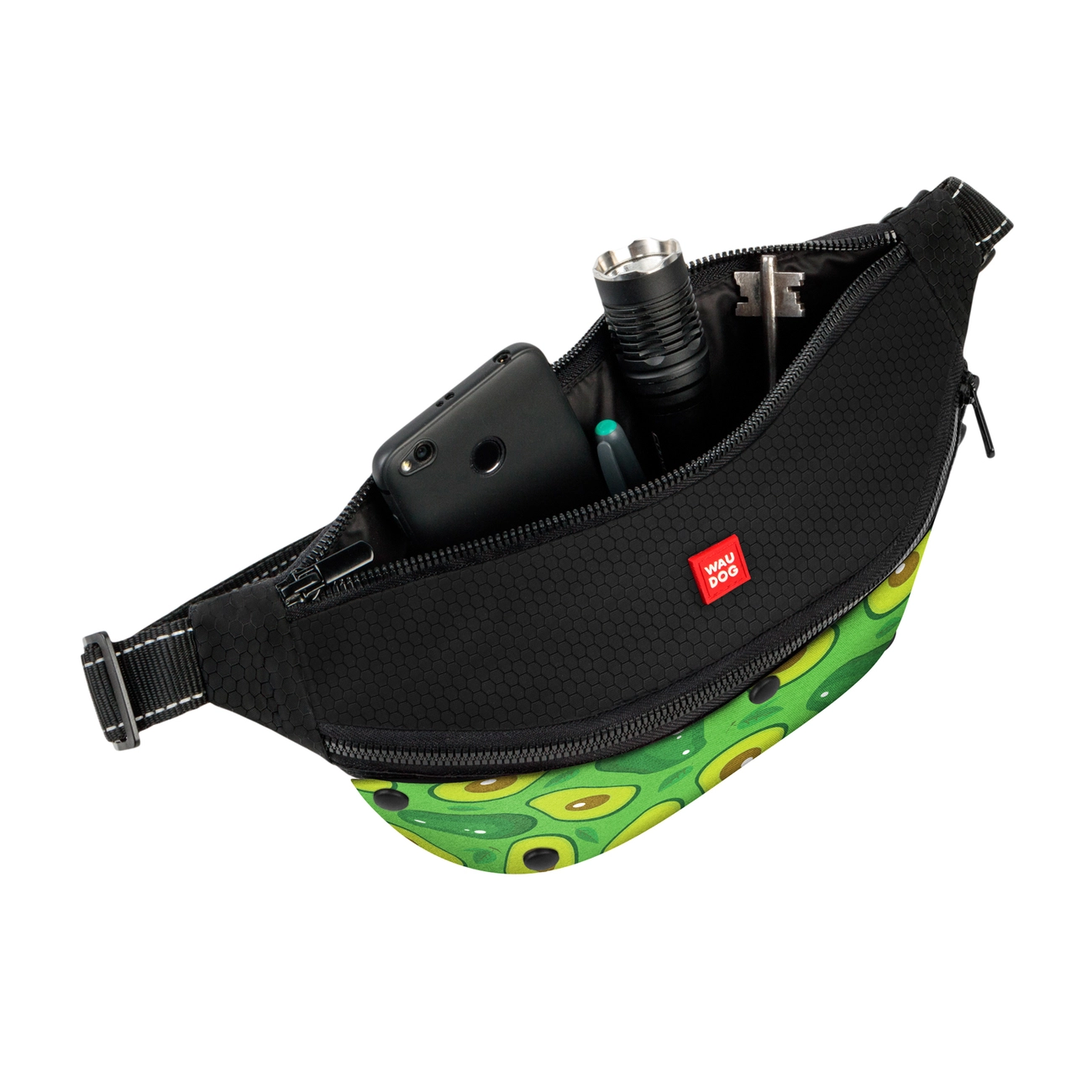 Поясная сумка-бананка WAUDOG Family для корма и акссесуаров, рисунок "Авокадо", размер 33*17*10 см